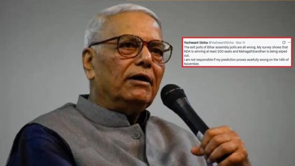 Yashwant Sinha’s Sarcasm Turns True: बिहार विधानसभा चुनाव के नतीजों ने इस बार बड़ा राजनीतिक उलटफेर कर दिया। एनडीए ने शानदार प्रदर्शन करते हुए रिकॉर्ड 202 सीटें जीत लीं, जबकि महागठबंधन को सिर्फ 35 सीटों पर ही संतोष करना पड़ा। इन नतीजों के बीच सबसे ज्यादा चर्चा पूर्व वित्त मंत्री यशवंत सिन्हा के उस पोस्ट की हो रही है, जिसमें उन्होंने चुनाव से पहले एक तीखा तंज कसा था। यशवंत सिन्हा ने एग्जिट पोल पर टिप्पणी करते हुए कहा था कि सभी एग्जिट पोल गलत हैं और उनका ‘सर्वे’ बता रहा है कि एनडीए कम से कम 200 सीटें जीत रहा है, जबकि महागठबंधन का लगभग सफाया हो जाएगा। उन्होंने यह बात व्यंग्य में कही थी, लेकिन नतीजे आने के बाद उनकी यह भविष्यवाणी सच साबित हो गई।