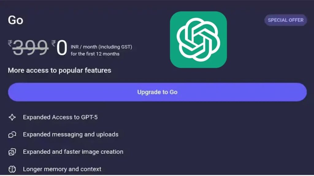 ChatGPT Go को इस साल की शुरुआत में ₹399 की कीमत पर 12 महीने के लिए लॉन्च किया गया था, जिसमें GPT-5 मॉडल तक 10 गुना फास्ट एक्सेस के साथ इमेज जेनरेशन की अधिक लिमिट दी गई थी। अब इसे फ्री करने के बाद, यूजर्स नॉर्मल फ्री अकाउंट से इसे अपग्रेड कर इस बेहतर अनुभव का लाभ ले सकते हैं।