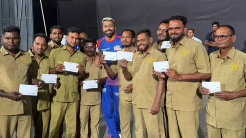 हार्दिक पांड्या ने सभी स्टाफ मेंबर्स को चेक देने के बाद उनके साथ फोटो भी खिंचवाई। यह तस्वीर सोशल मीडिया पर तेजी से वायरल हो रही है। फैंस इस कदम की जमकर तारीफ कर रहे हैं और इसे एक सच्चे खिलाड़ी की पहचान बता रहे हैं।