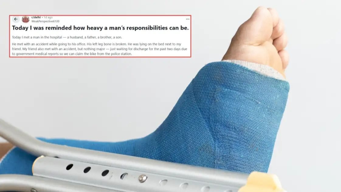 यह आपबीती रेडिट पर एक यूजर ने साझा की, जो सोशल मीडिया पर तेजी से वायरल हो रही है। पोस्ट के मुताबिक, यूजर अपने दोस्त के साथ अस्पताल में मौजूद था। वहीं पास के बेड पर एक शख्स लेटा हुआ था, जो ऑफिस जाते समय भयानक सड़क हादसे का शिकार हो गया था। उसका बायां पैर टूट चुका था, काफी खून बह रहा था और डॉक्टर उसे ऑपरेशन थिएटर ले जाने की तैयारी कर रहे थे।