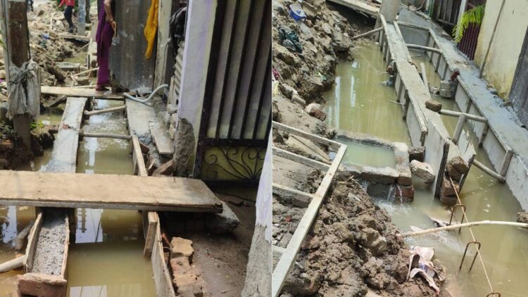 नाली खुदाई के लिए जो जेसीबी मशीनें लगाई गई थीं, उन्होंने बगैर किसी योजना और तकनीकी निरीक्षण के गड्ढे खोद दिए। दो महीने बीत जाने के बाद भी काम अधूरा पड़ा है और कॉलोनी की सड़कें कीचड़ व जलजमाव में तब्दील हो गई हैं।