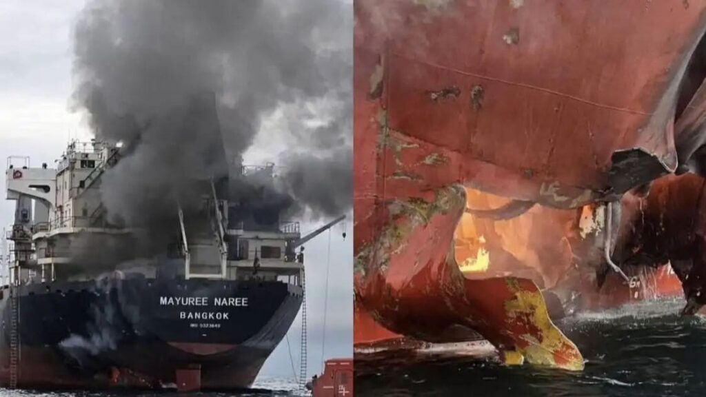 जिस जहाज पर हमला हुआ उसका नाम मयूरी नारी बताया जा रहा है। यह एक बहुत बड़ा बल्क कैरियर जहाज है, जिसकी लंबाई करीब 178 मीटर और वजन लगभग 30,000 टन बताया गया है। हमले के बाद जहाज पर मौजूद क्रू सदस्यों को अपनी जान बचाने के लिए जहाज छोड़ना पड़ा और वे समुद्र में उतर गए। बचाव दल ने तुरंत राहत कार्य शुरू किया और पानी में फंसे 20 लोगों को सुरक्षित बाहर निकाल लिया गया।