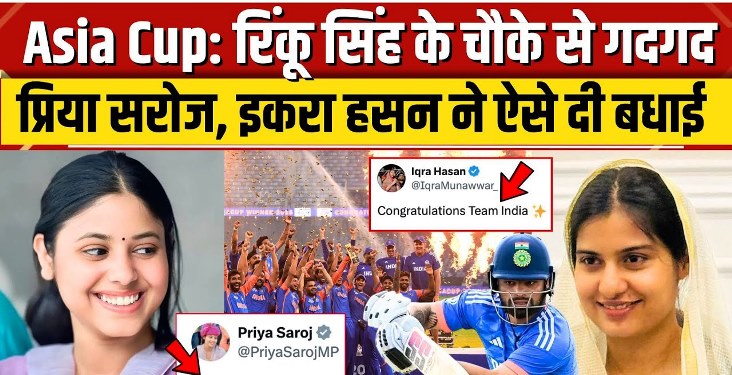 इकरा हसन ने जो कहा वह सच साबित हुआ। भारतीय टीम शेरों की तरह मैदान में खेली। पाकिस्तान को एशिया कप में हराकर चैंपियन बनी। भारत ने फाइनल मुकाबले में पाक पर शानदार जीत दर्ज की। टीम इंडिया स्वदेश लौट आई है और वेस्टइंडीज के खिलाफ दो टेस्ट मैचों की सीरीज का पहला मुकाबला भी खेल रही है। एशिया कप में मिली जीत के बाद भारतीय खिलाड़ियों की जय-जयकार हो रही है। इकरा के साथ ही प्रिया सरोज ने टीम इंडिया की जीत की बधाई दी है। प्रिया सरोज ने एक्स पर रिंकू सिंह के बारे में भी लिखा। अपने होने वाले पति की जमकर सराहनी की।