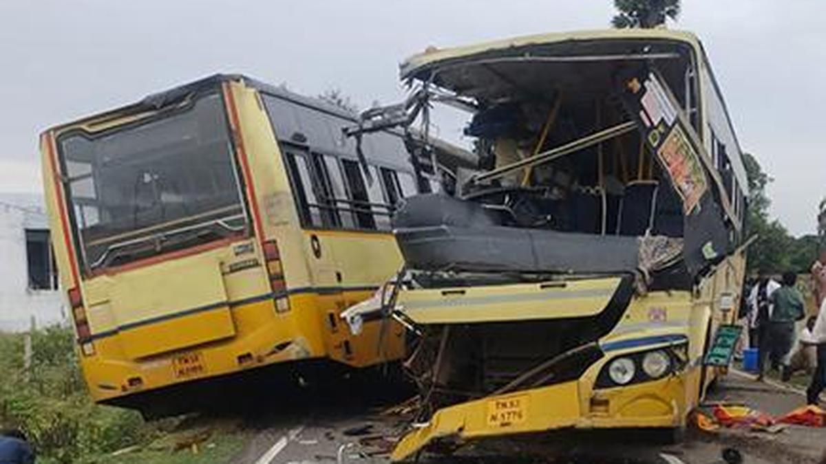 घटना रविवार शाम की है, जब शिवगंगा जिले में दो सरकारी बसें आमने-सामने टकरा गईं। इस हादसे में कम से कम 11–12 लोगों की मौत हुई और करीब 40 अन्य यात्री घायल हुए। स्थानीय प्रशासन द्वारा अस्पताल में घायल लोगों का इलाज कराया जा रहा है।