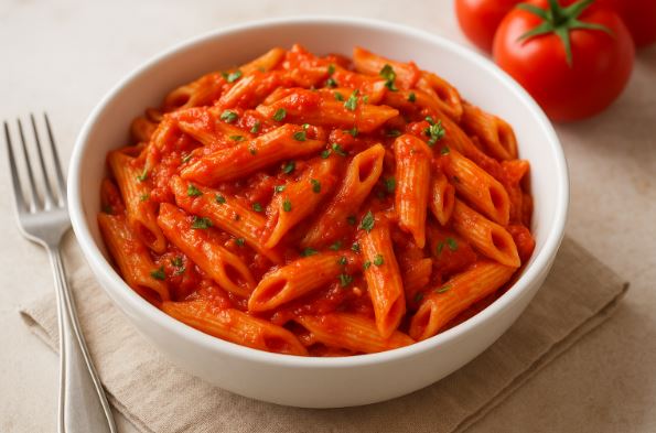 तैयार पास्ता का स्वाद हल्का-सा तीखा (टैंगी) और मुलायम टेक्सचर वाला होता है — जो रोज़ के खाने या विशेष अवसर दोनों के लिए उपयुक्त है।आप सॉस में भाजी-पत्ते, शिमला मिर्च, मशरूम या अन्य सब्जियाँ मिलाकर इसे और पौष्टिक व स्वादिष्ट बना सकते हैं। यह व्यंजन बच्चों की पार्टी, टिफिन या साधारण डिनर — तीनों के लिए उपयुक्त है।