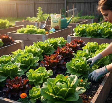 लेट्यूस के पौधों को अच्छी धूप (दिन में कुछ घंटे सीधे सूर्य का प्रकाश) और नियमित नमी की आवश्यकता होती है। परन्तु पानी जमा नहीं होने देना चाहिए, वरना जड़ें सड़ सकती हैं। यदि पत्तियों पर कीट लगें, तो नीम के तेल का स्प्रे करना प्रभावी उपाय है। इसके अलावा आप घर में बने ऑर्गेनिक खाद (जैसे सब्जियों के छिलके, सूखी पत्तियाँ आदि) को समय‑समय पर मिट्टी में मिला सकते हैं।
