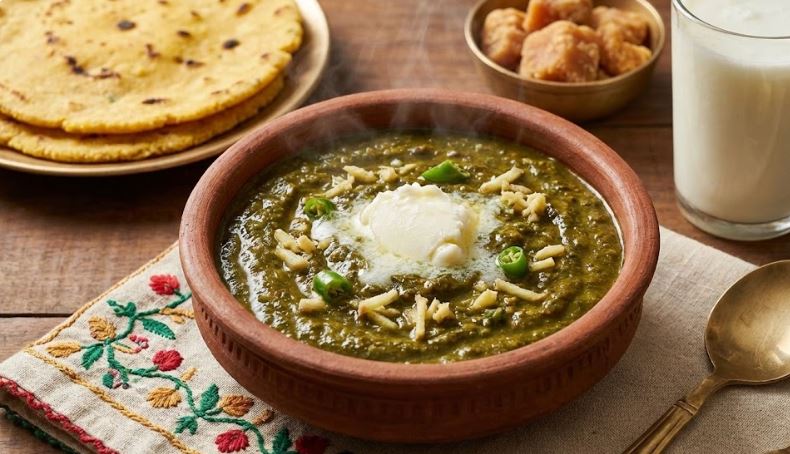 सरसों का साग न सिर्फ स्वादिष्ट होता है, बल्कि स्वास्थ्य के लिए भी लाभदायक माना जाता है। इसमें मौजूद हरी पत्तेदार सब्ज़ियाँ आयरन, विटामिन और फाइबर का अच्छा स्रोत हैं, जो ठंड के मौसम में प्रतिरक्षा प्रणाली को मजबूत बनाए रखने में सहायक हैं।