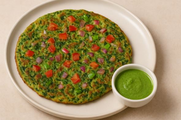 पालक उत्तपम बच्चों के लिए हल्का और सुपाच्य नाश्ता है। ताजा सब्जियों और दही के साथ यह मिनरल और विटामिन से भरपूर होता है। सुबह के समय ऊर्जा के लिए परोसें।