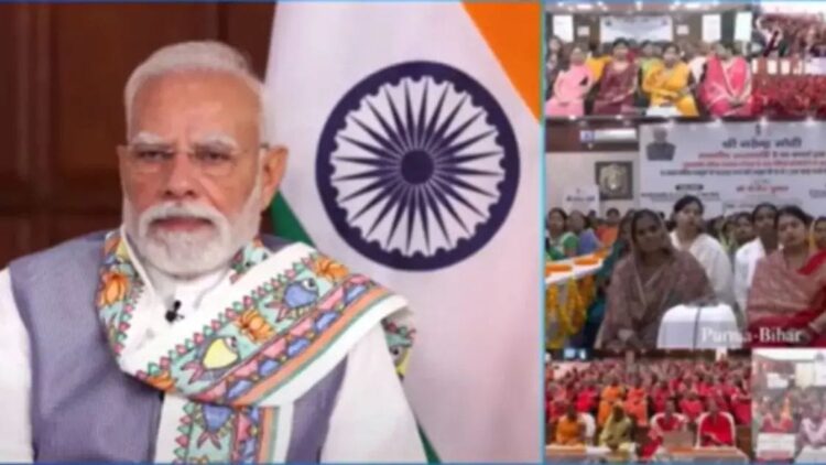 PM Modi Bihar Rozgar Yojana: प्रधानमंत्री नरेंद्र मोदी ने गुरुवार को बिहार की महिलाओं के लिए बड़ी राहत और उम्मीद भरा तोहफा दिया। उन्होंने मुख्यमंत्री रोजगार योजना की शुरुआत की और वीडियो कॉन्फ्रेंसिंग के जरिए 75 लाख महिलाओं के खातों में सीधे 10-10 हजार रुपये भेजे। इस मौके पर मुख्यमंत्री नीतीश कुमार, उपमुख्यमंत्री सम्राट चौधरी और विजय कुमार सिन्हा समेत कई मंत्री भी मौजूद रहे।
