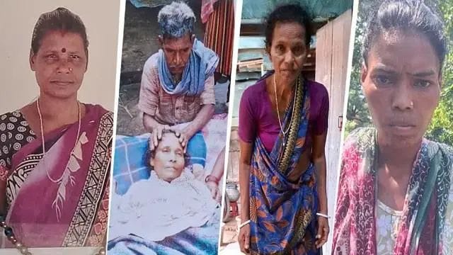 56 वर्षीय विनोद बेसरा गांव के सबसे बुजुर्ग व्यक्तियों में से एक हैं। वे साल 2019 से बिस्तर पर पड़े हैं। विनोद बताते हैं, “पहले पैरों में दर्द हुआ, फिर कमर जवाब दे गई… अब पूरा शरीर धीरे-धीरे काम करना बंद कर रहा है।” उनकी पत्नी पूर्णी देवी (43) और बेटी ललिता (27) भी इसी बीमारी की चपेट में हैं। ललिता का चेहरा अब उम्र से कई साल बड़ा दिखने लगा है।