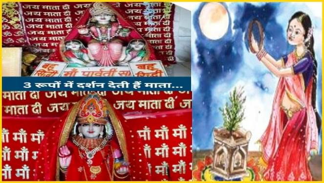 बताया जाता है कि करवा चौथ पर माता के अलग-अलग स्वरूप में दर्शन होते है। सुबह माता बाल स्वरूप, दोपहर में किशोरी और शाम को एक विशेष स्वरुप में दर्शन देती है। करवा चौथ पर होने वाले इन दिव्य दर्शनों के लिए बड़ी संख्या में माता बहने मंदिर में पहुंचती है और दर्शन का लाभ लेने के साथ ही पति की लंबी आयु की कामना भी करती है। मंदिर में सुहागन महिलाओं के साथ ही कुंवारी लड़कियां भी अच्छे पति की कामना लेकर यहां पहुंचती है। मंदिर के पुजारी का कहना है कि कुवांरी युवतियां करवा चौथ से ठीक एक दिन पहले मंदिर पहुंच जाती है। रात को विधि-विधान से पूजा की तैयारी करती हैं। सुबह से वह निर्जला व्रत रखती हैं। पूरे दिन माता के दरवार भजन-कीर्तन का आयोजन होता है। युवतियों के साथ सुहागिनें माता का जप करती हैं। पुजारी के मुताबिक माता रानी की कृपा से कुंवारी लड़कियों को जीवनसाथी मिल जाता है। विवाहित महिलाओं की मुरादें मातारानी पूरी करती हैं।