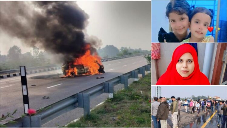 यात्रा के दौरान जिशान ने कार थोड़ी देर के लिए एक्सप्रेसवे पर रोक दी। परिवार के लोग पानी पीने लगे। इसी बीच आजमगढ़ की ओर से तेज रफ्तार में आ रही ब्रेजा कार ने पीछे से वैगनआर में जोरदार टक्कर मार दी। टक्कर होते ही जबरदस्त धमाका हुआ और कुछ ही सेकंड में दोनों कारों में आग लग गई। कई ग्रामीणों ने बताया कि धमाका इतना तेज था कि कुछ देर तक केवल चीखें और आग की लपटें ही दिखाई दे रही थीं।
