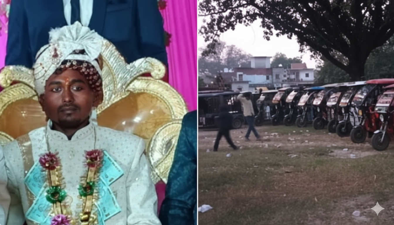 Deoria e-rickshaw wedding procession: उत्तर प्रदेश के देवरिया जिले में एक अनोखी बारात चर्चा का विषय बनी हुई है, जिसने लग्जरी गाड़ियों के दौर में सादगी और जुगाड़ का अद्भुत उदाहरण पेश किया है। खुखुंदू थाना क्षेत्र के भटहर निवासी दिहाड़ी मजदूर दुर्गेश प्रसाद की शादी के दिन, लगन तेज होने के कारण उन्हें बारात ले जाने के लिए गाड़ियां नहीं मिल पाईं और किराए के दाम आसमान छू रहे थे। दूल्हे और उसके परिवार की चिंता को समझते हुए, दोस्तों ने एक शानदार और पर्यावरण-अनुकूल रास्ता निकाला: ई-रिक्शा। उन्होंने लगभग 30 ई-रिक्शा की व्यवस्था की। परछावन के बाद जब यह अनूठी बारात एक कतार में निकली, तो सड़कों पर चल रहे लोग रुक कर देखने लगे। इस निर्णय ने न केवल शादी संपन्न कराई, बल्कि अनावश्यक खर्चों पर रोक लगाने का एक प्रेरणादायक संदेश भी दिया।