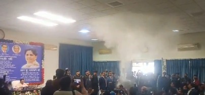 बीएसपी सुप्रीमो मायावती की प्रेस कॉन्फ्रेंस के दौरान लगी आग