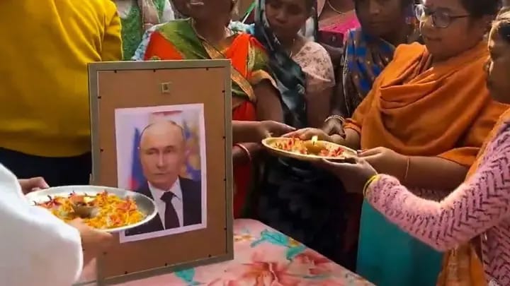 Varanasi, Uttar Pradesh: There is tremendous enthusiasm in Varanasi, the parliamentary constituency of Prime Minister Narendra Modi, to welcome Russian President Vladimir Putin. Local people performed an aarti in front of Putin’s picture as a unique gesture of welcome. With the… pic.twitter.com/ttNhkEvHzQ