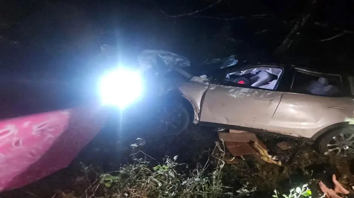 हादसा बेहद भयावह था। कार अचानक नियंत्रण से बाहर हो गई। ऐसा लगा जैसे ब्रेक ने काम करना बंद कर दिया हो। देखते ही देखते वाहन सीधे गहरी खाई में जा गिरा। जोरदार टक्कर से कार के परखचे उड़ गए।